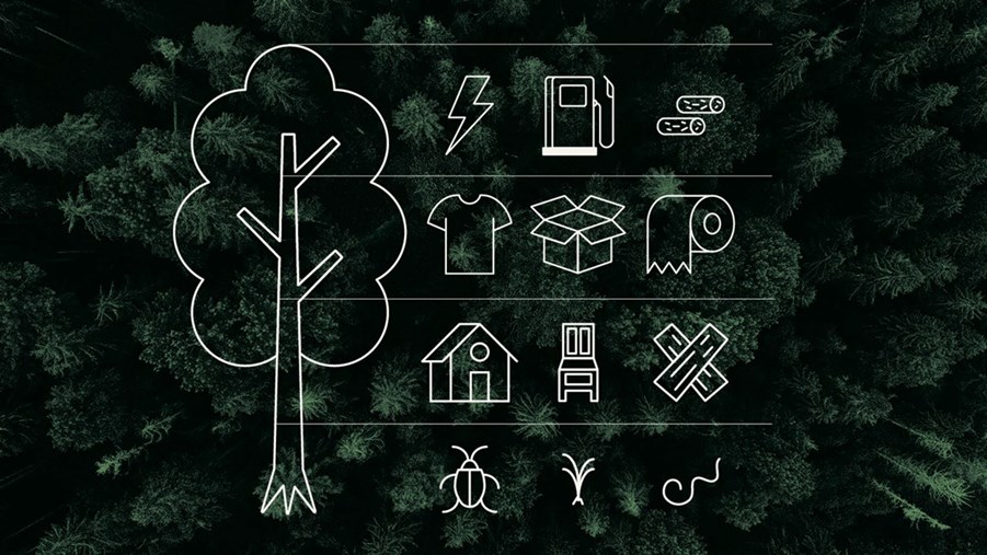 Wood is a versatile material, and every part of the tree is used as resource-efficiently as possible. The different parts are used according to the highest possible refinement value for each part.