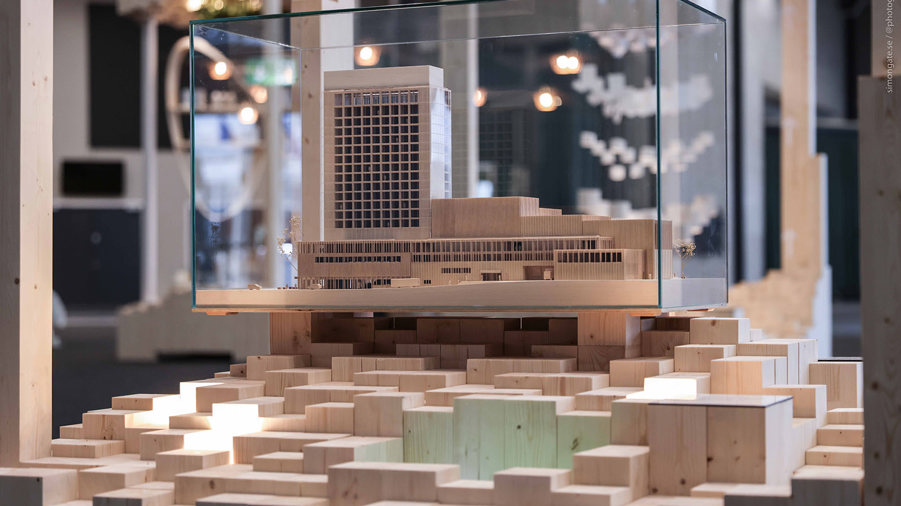 A model of Sara Cultural Centre is on display at the exhibition during the Swedish Presidency. The construction is one of the world’s tallest wooden buildings and has become both a cenral landmark and a meeting place in the city of Skellefteå.