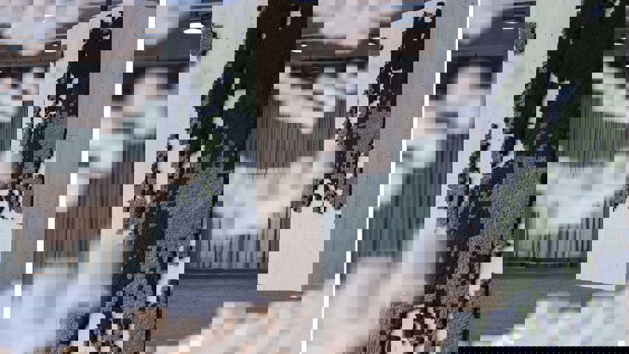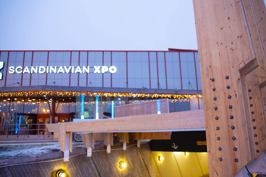 Northern lights, forests and endless horizons welcome EU-delegates at the entrance of the conference center XPO. A magnificent slide show framed in wood has been built in front of the entrance.
