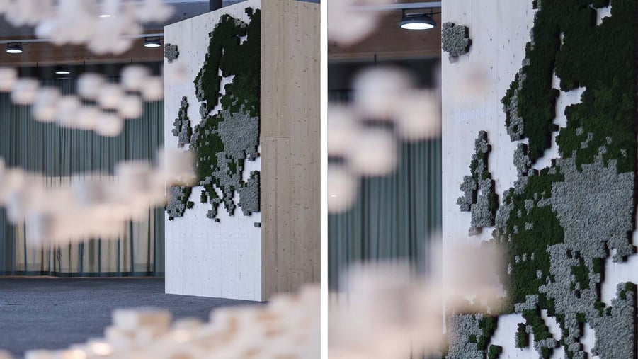 It can be difficult to find the time for a forest walk between the meetings at XPO, which is why we created a mirror forest indoors. This way, even a busy visitor can get a sense of what it is like to step into a large Swedish forest.
