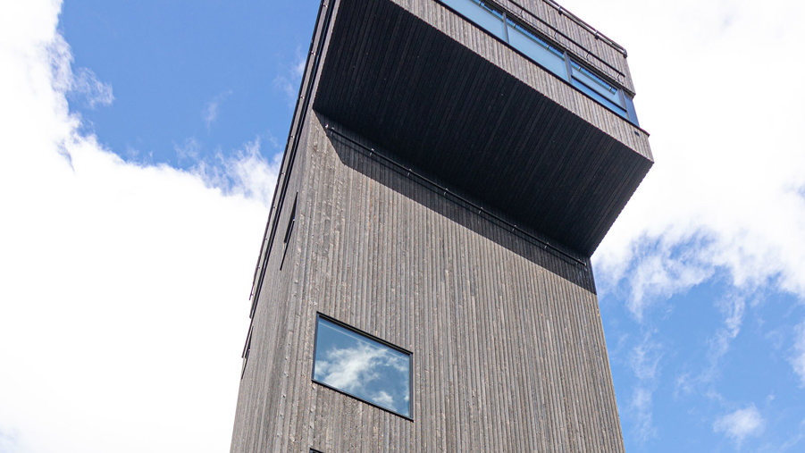 Siljansnäs observation tower was Sweden’s first FSC-certified building (one of the leading certification systems for forestry and traceability) and from where it is possible to see virtually all of Siljansringen, Europe’s largest meteor crater. The frame is made from certified timber from Setra’s wood industry centre in nearby Långshyttan. The facade is covered in charred larch wood.